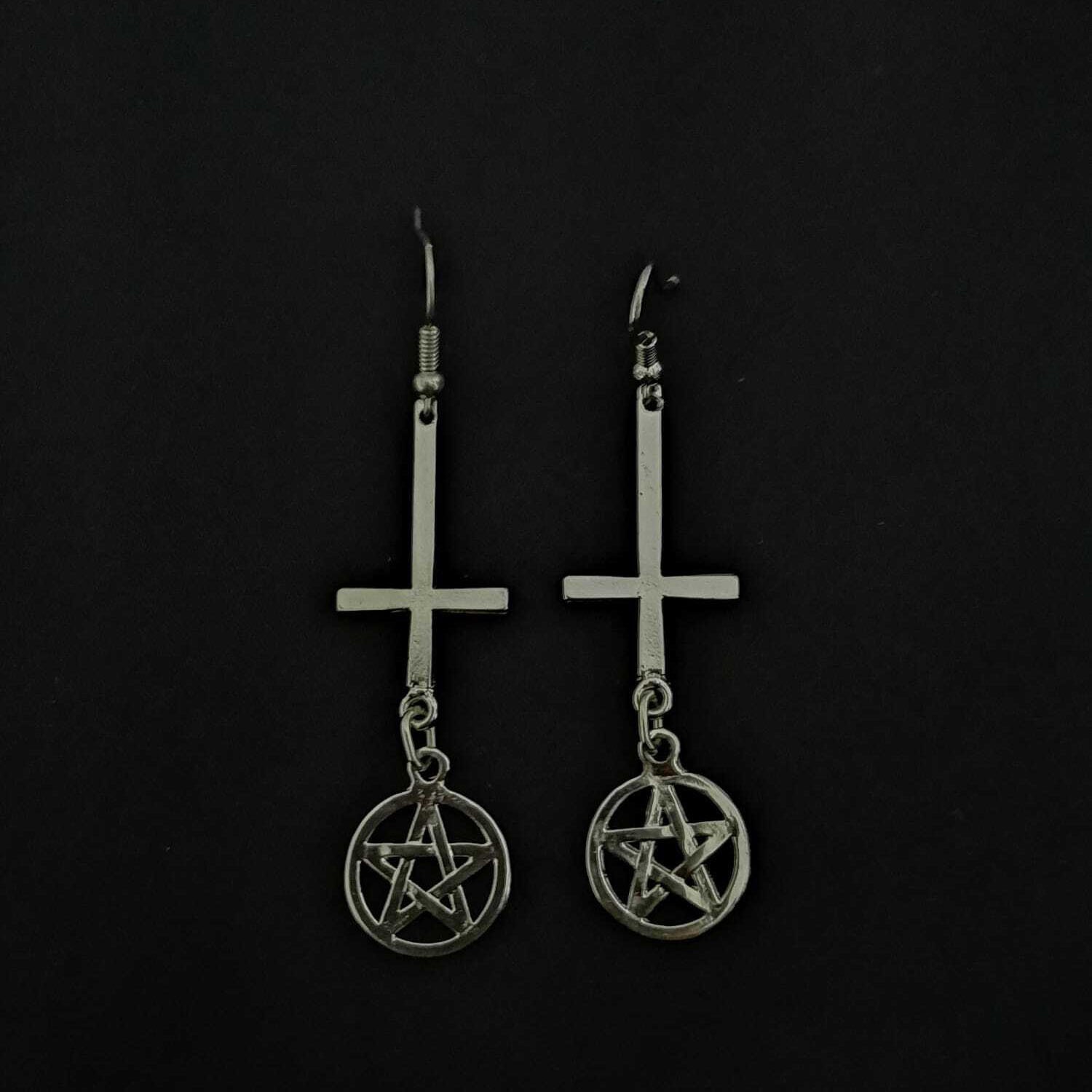 Pentagram Ters Haç 3 Küpe